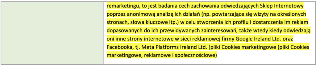 7.9. W związku z możliwością korzystania przez Administratora w Sklepie Internetowym z usług reklamowych i analitycznych dostarczanych przez Google Ireland Ltd., Administrator wskazuje, że pełna informacja o zasadach przetwarzania danych osób odwiedzających Sklep Internetowy (w tym informacji zapisanych w plikach Cookies) przez Google Ireland Ltd. znajduje się w polityce prywatności usług Google dostępnej pod adresem internetowym: https://policies.google.com/technologies/partner- sites.
